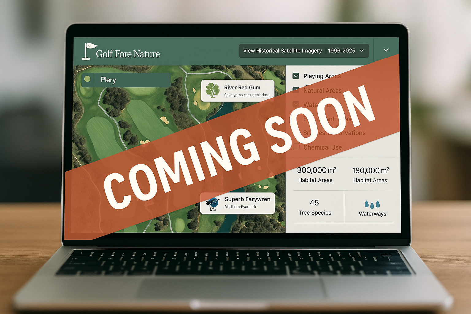 ✔ A Living History of Your Course: Scroll through changes over time with satellite imagery and species tracking.